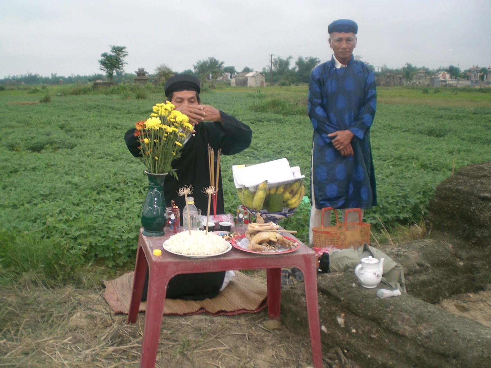 Đôi chân gà sau khi cúng, 2 vị này khăn gói đến kiến một vị xem địa lý, mộ trạch có tiếng tăm trong vùng, và đã hoàn toàn sở nguyện!